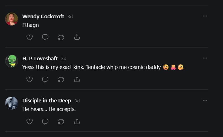 Bring me Cthulhu at brunch, Nyarlathotep in a cardigan, and Yog-Sothoth’s travel blog.